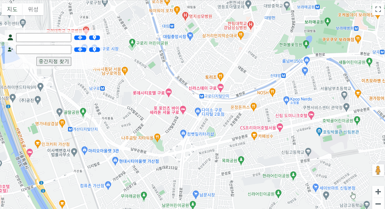 두 사람의 중간 위치가 어디지? 라는 생각에 간단하게 중간지점 찾는 코드를 만들어보았다.